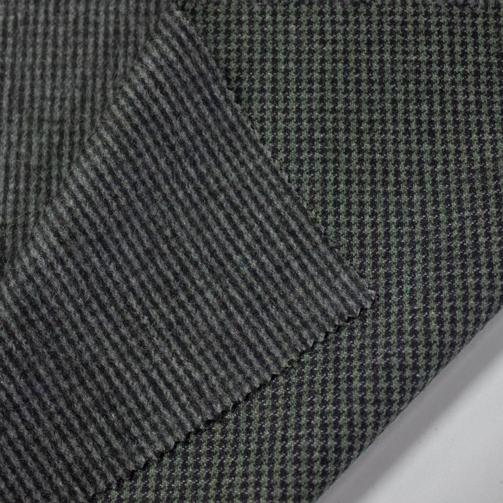Floran Greyish Green Check Wool Flannel Stretch Fabric