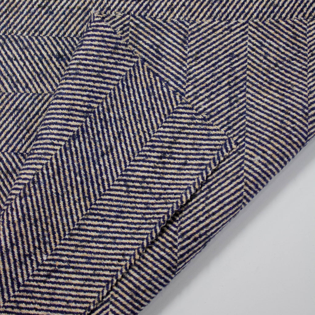 Nina Blue Herringbone Wool Blend Fabric