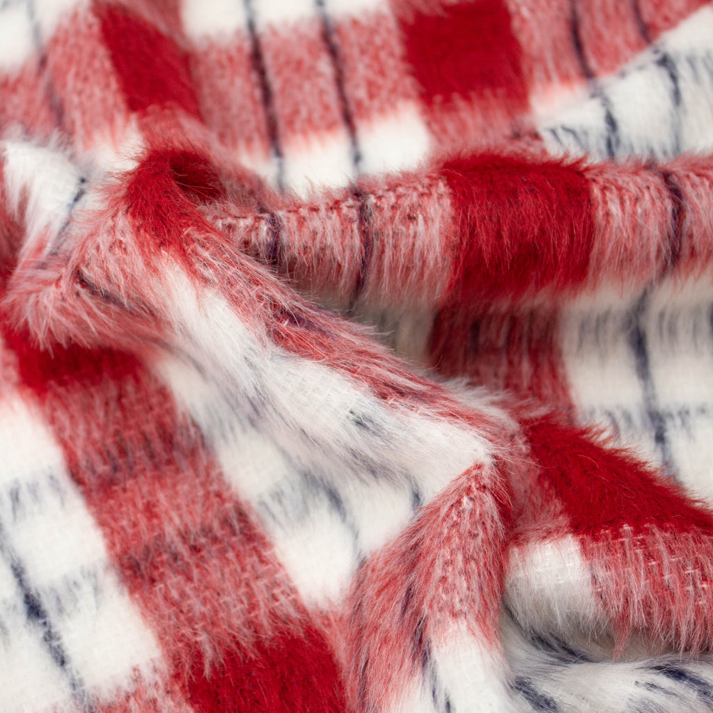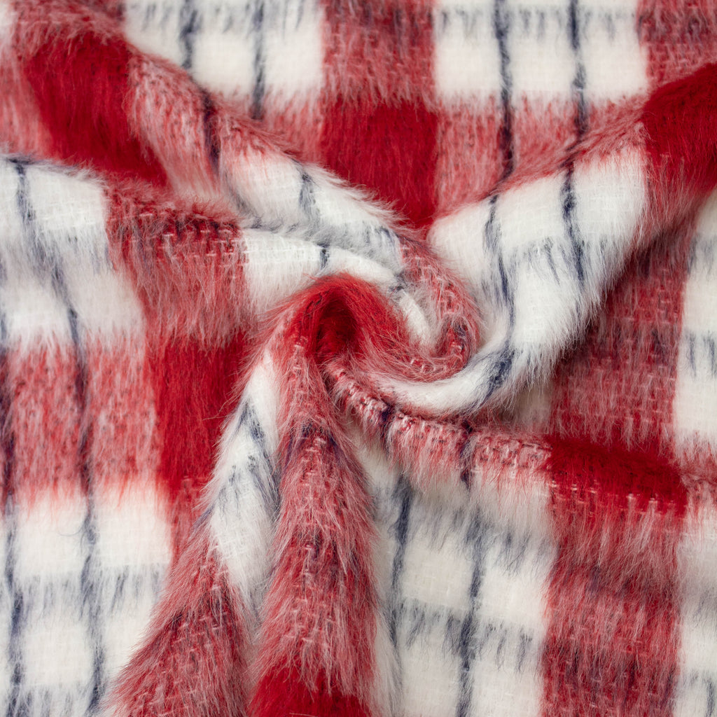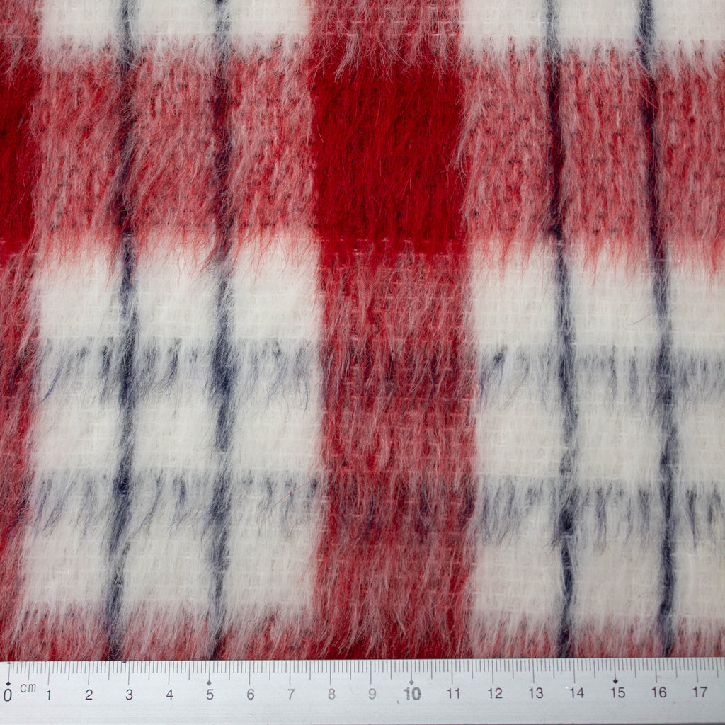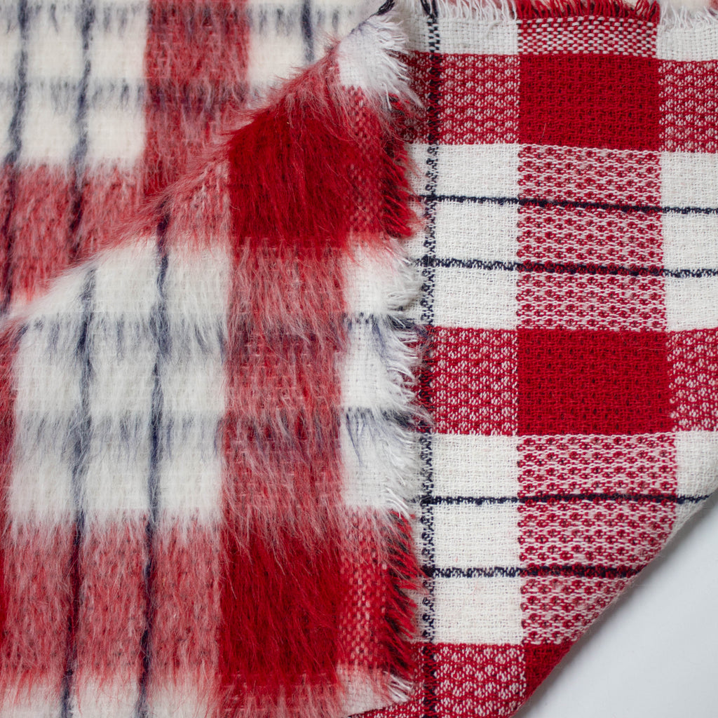 Carol Red Check Wool Mohair Blend Fabric - ONLINE EXCLUSIVE -