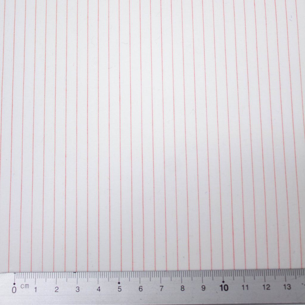 Selena is an off white & red striped cotton fabric that you can use for tops, dresses, shirts and skirts.