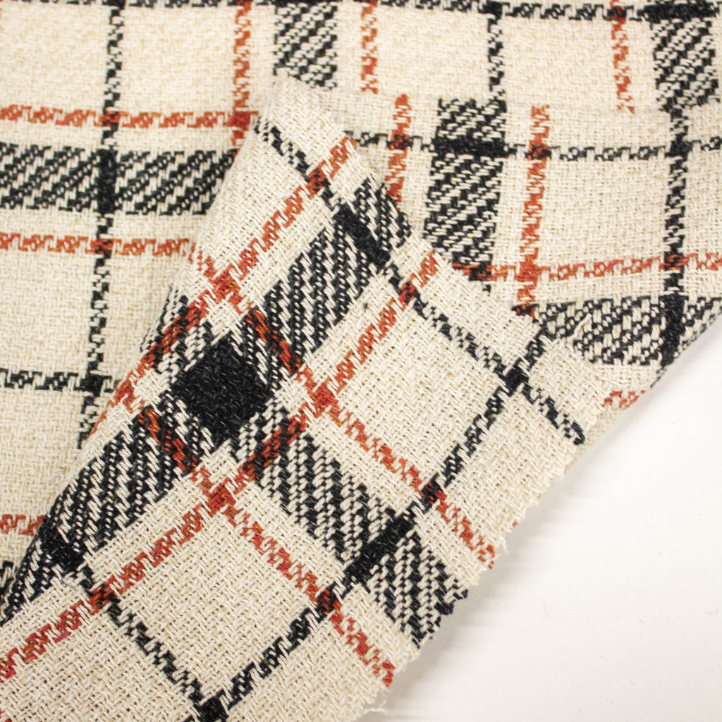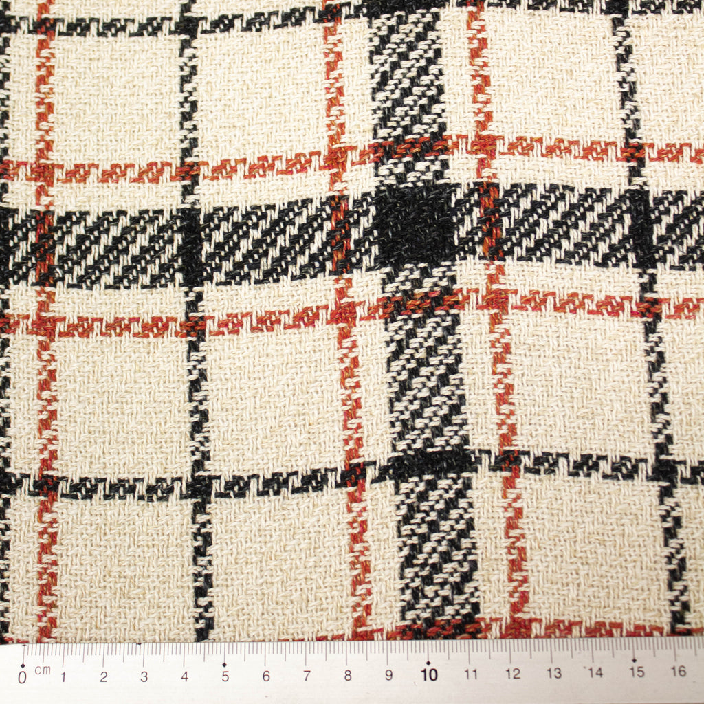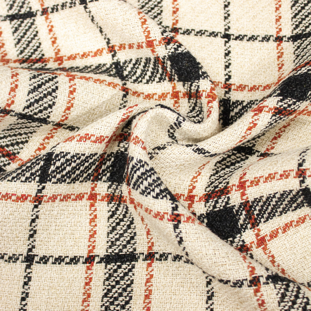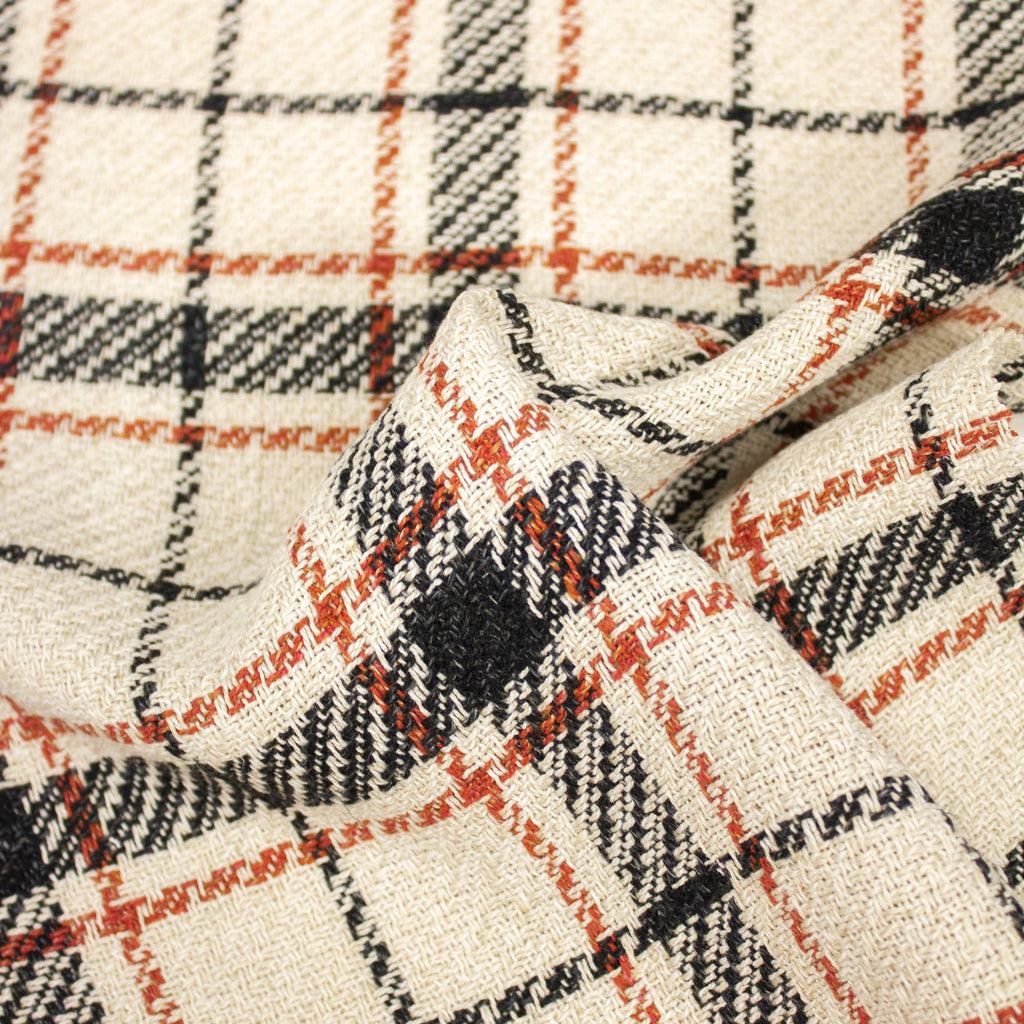 Charly is a beige colored cotton linen blend fabric with check pattern. This fabric can be used for blazers, jackets, dresses or skirts.