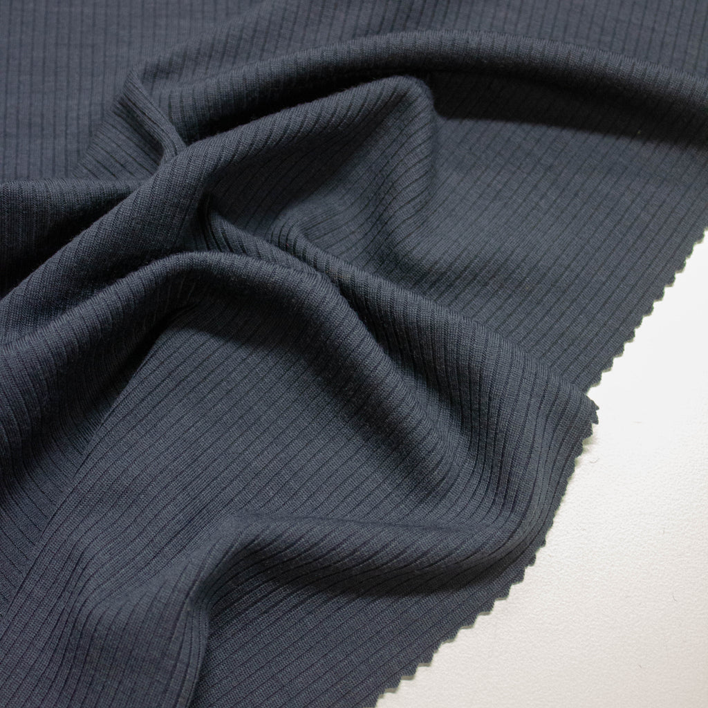 Azir is a grey cotton rib jersey fabric, fluid and stretchy, ideal for tops, dresses or skirts.