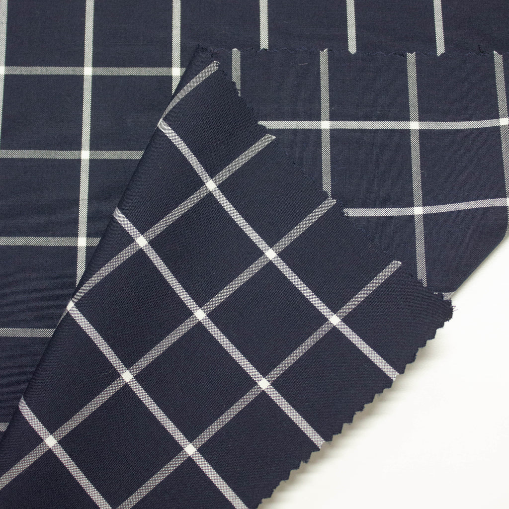 Charles is a dark blue wool suiting fabric with check pattern. This fabric can be used for blazers, trousers, dresses and skirts but also top or shirts.