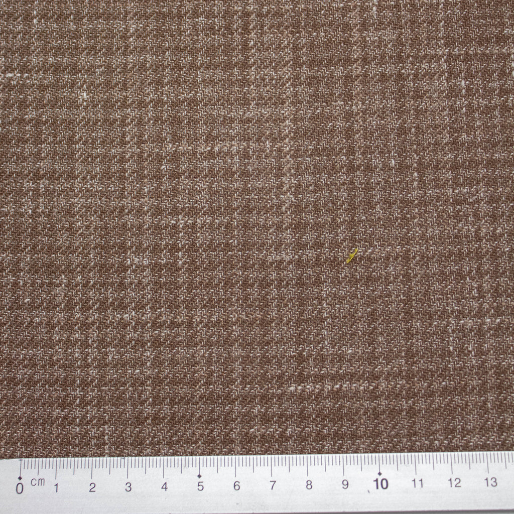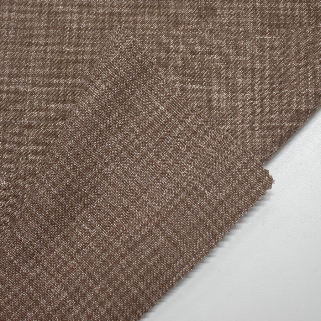 Ilan is a fluid wool fabric made out of brown and off white threads. This fabric can be used for blouses, tops, blazers, dresses, skirts and trousers.