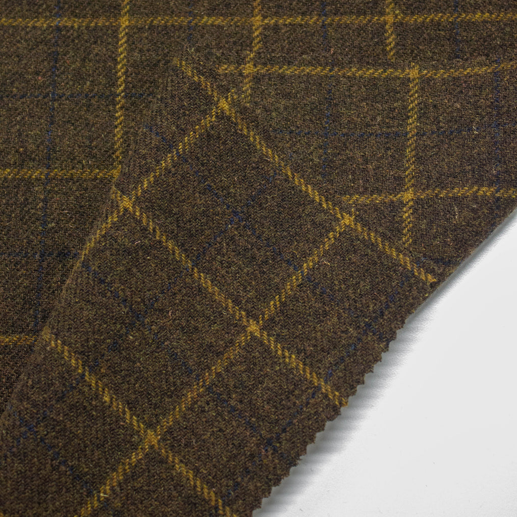 Jins is a khaki brown wool tweed fabric with check pattern ideal for jackets, coats, dresses or skirts.