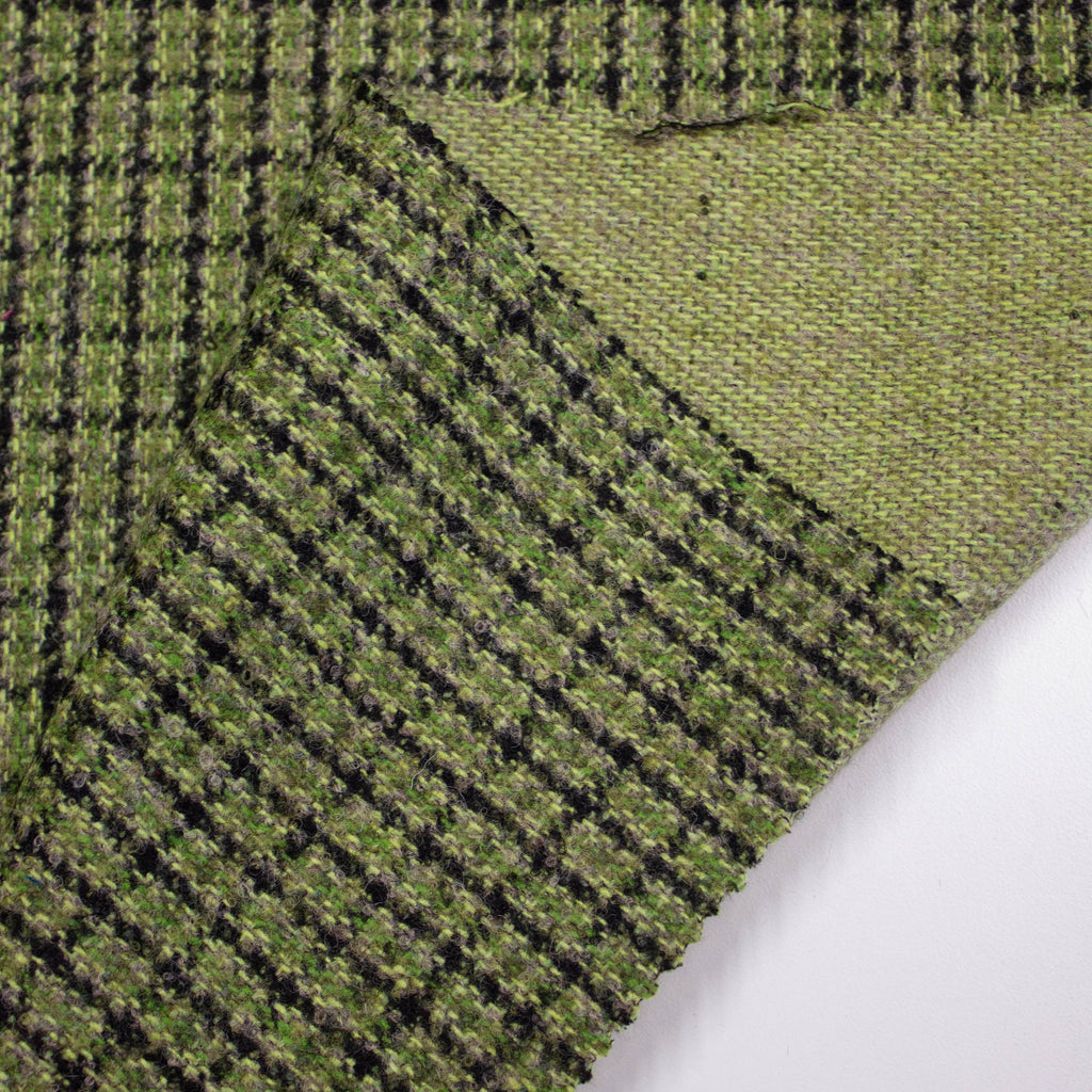 Dena is a wool coating fabric with green check pattern. This wool blend fabric can be used for jackets, coats, skirts but also more structured winter dresses.
