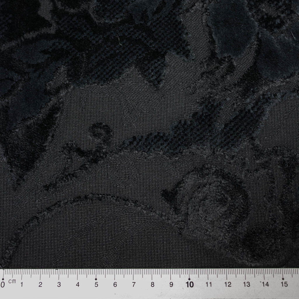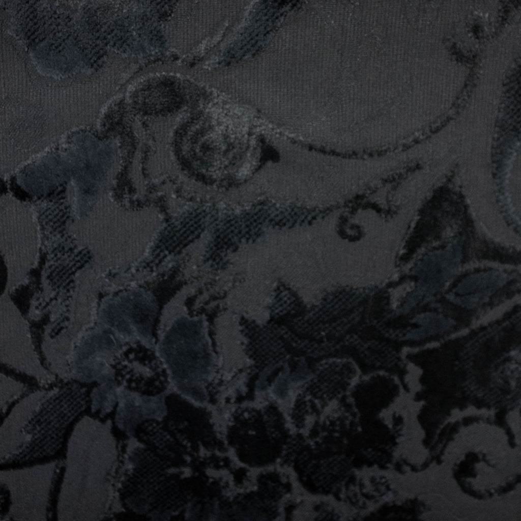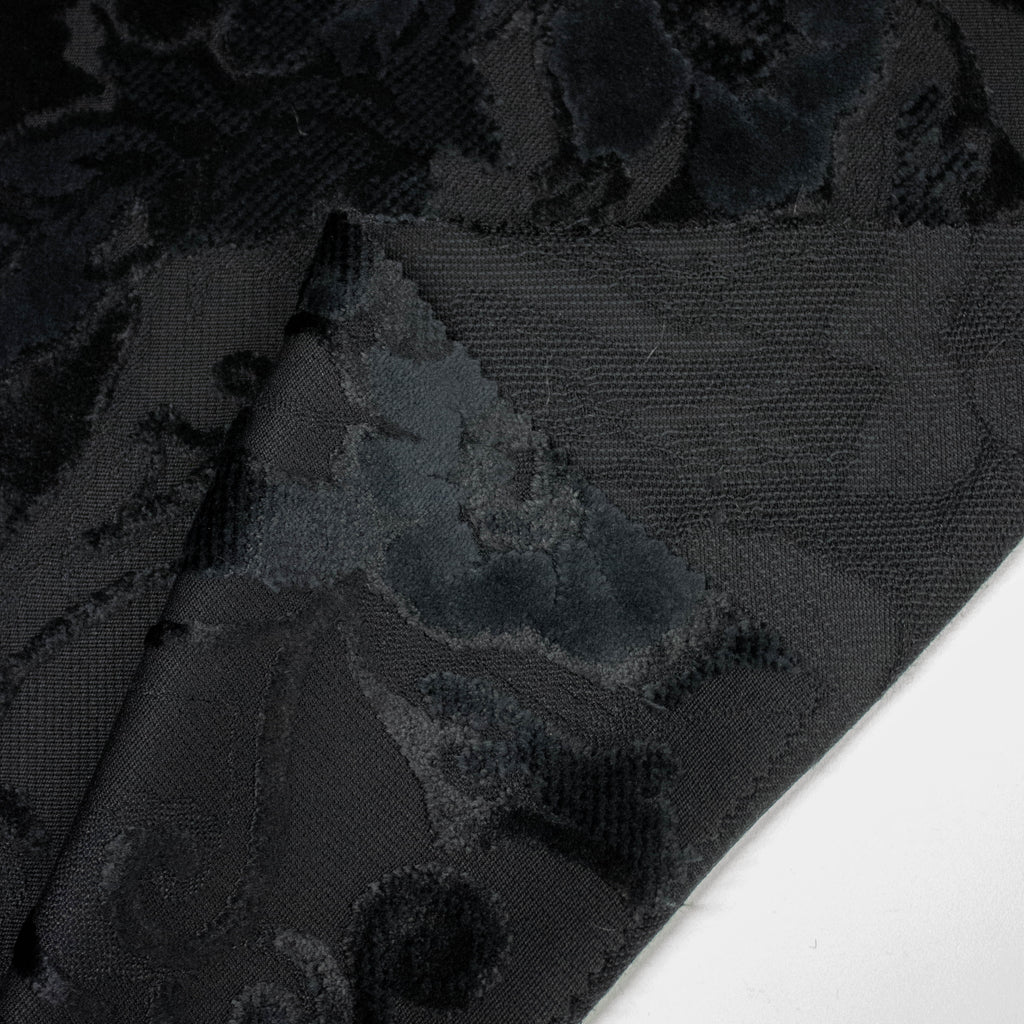 Doja Black Floral Flocked Cotton Jacquard Fabric