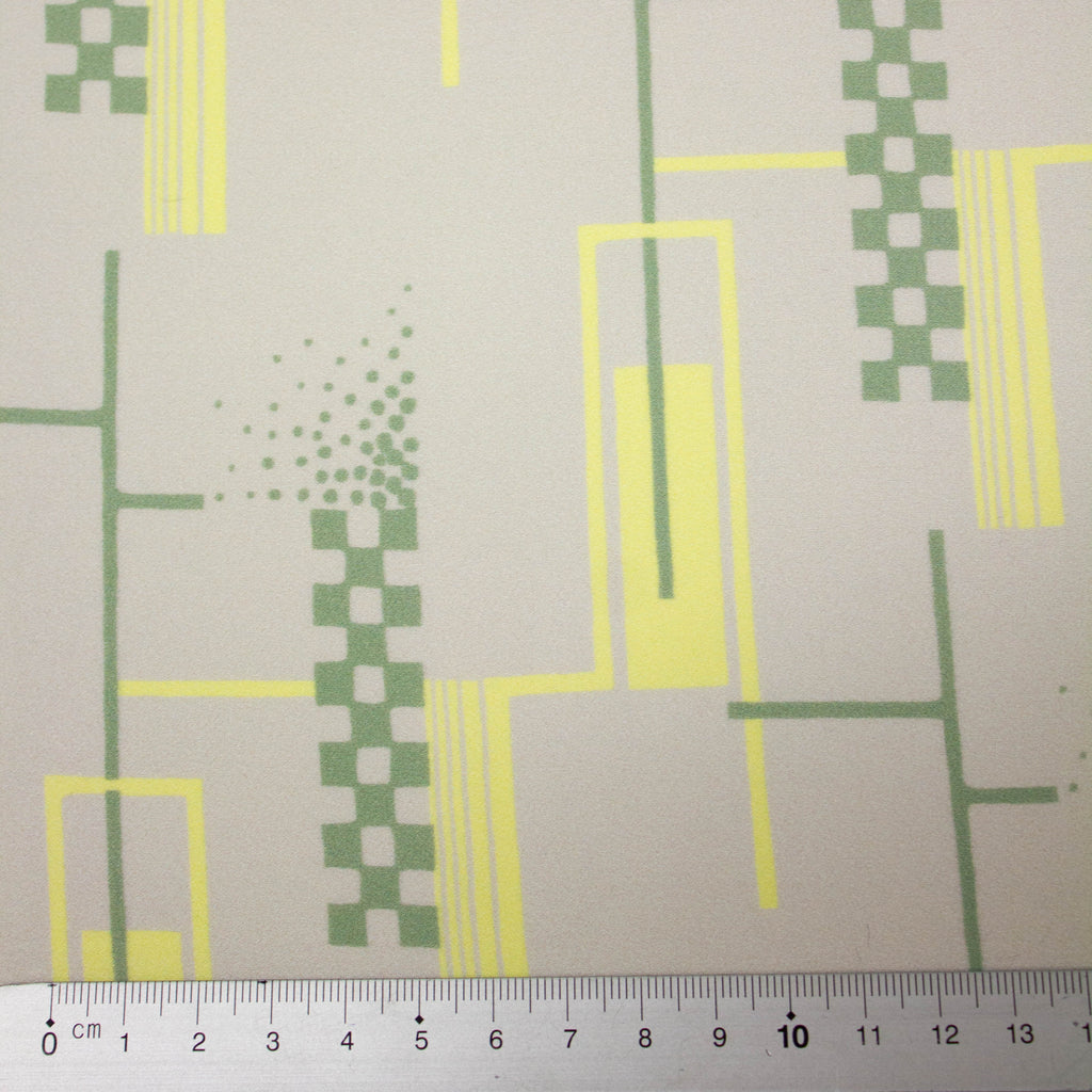 Omyn is a greige viscose fabric with yellow & green abstract pattern. This fluid fabric can be used for tops, blouses, dresses, skirts and trousers.