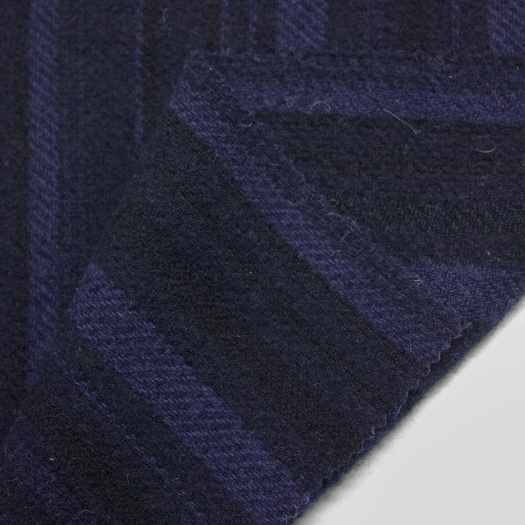 Fillo is a soft wool fabric with blue & black striped pattern. This wool fabric is rather fluid and can be used for dresses, skirts, winter trousers or jackets.