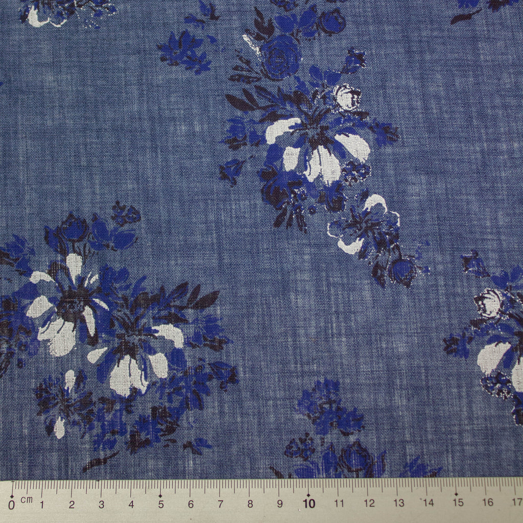 Lilo Blue Floral Printed Linen Fabric