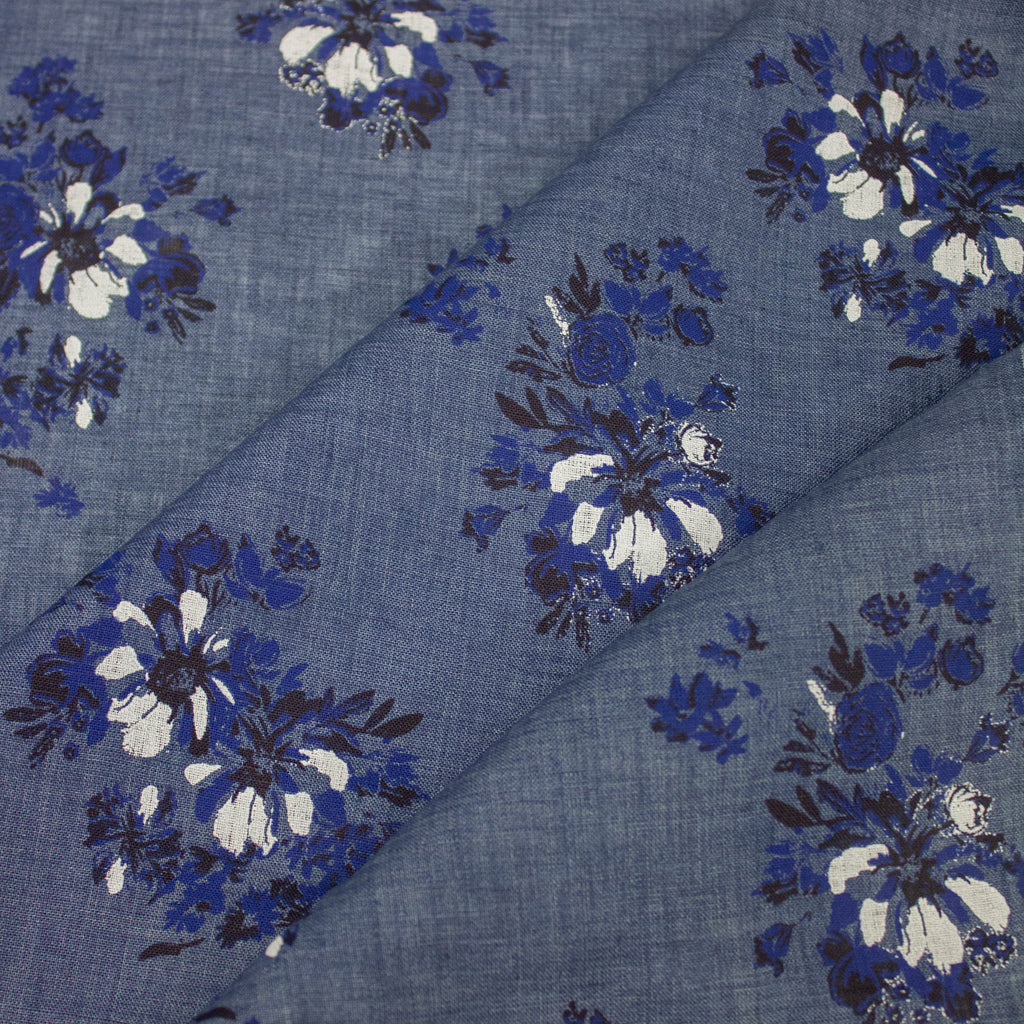 Lili is a blue linen fabric with floral printed pattern. This fabric can be used for tops, blouses, shirts, dresses and skirts.