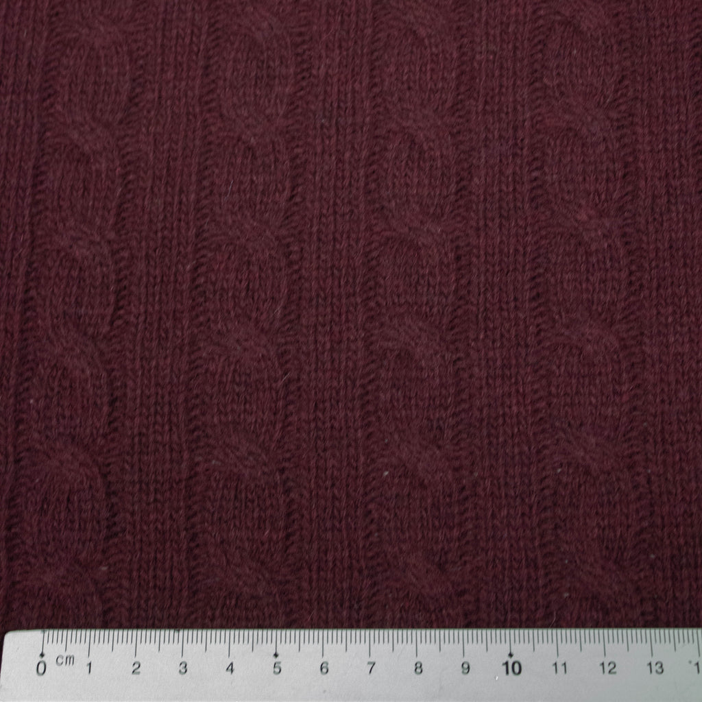 Mona Burgundy Cable Knit Wool Fabric - ONLINE EXCLUSIVE -