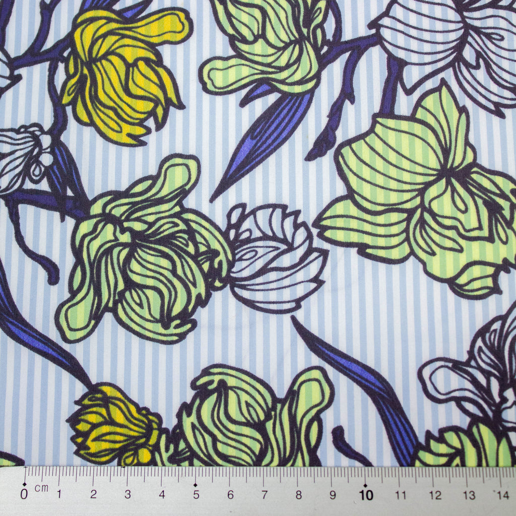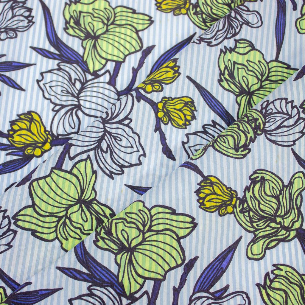 Ozyn Blue Floral Striped Cotton Poplin Fabric