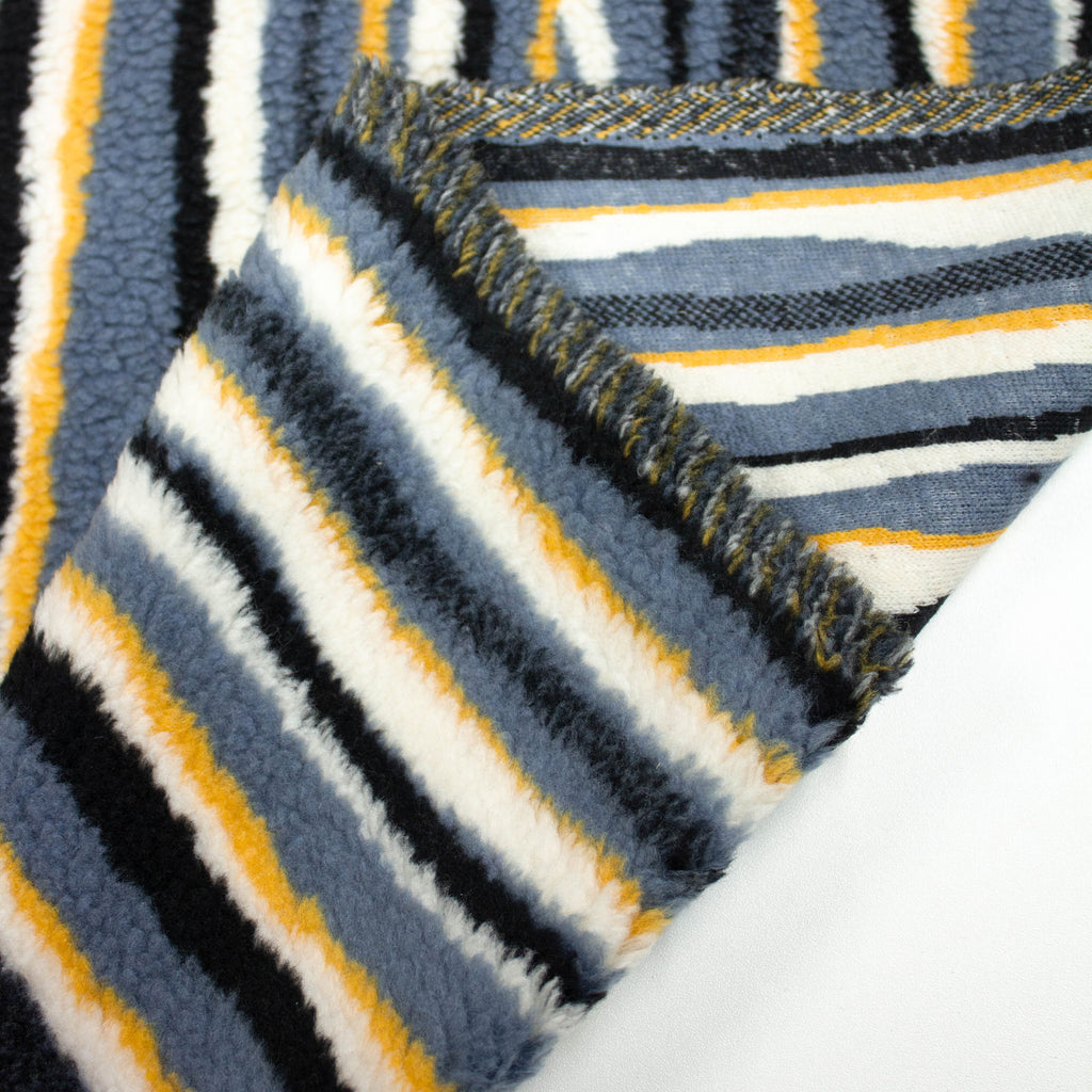 Pira is an abstract striped teddy fabric that you can use for cosy jackets, sweaters, hoodies or bodywarmers. Due to the weaving the fabric also feels a bit stretchy.