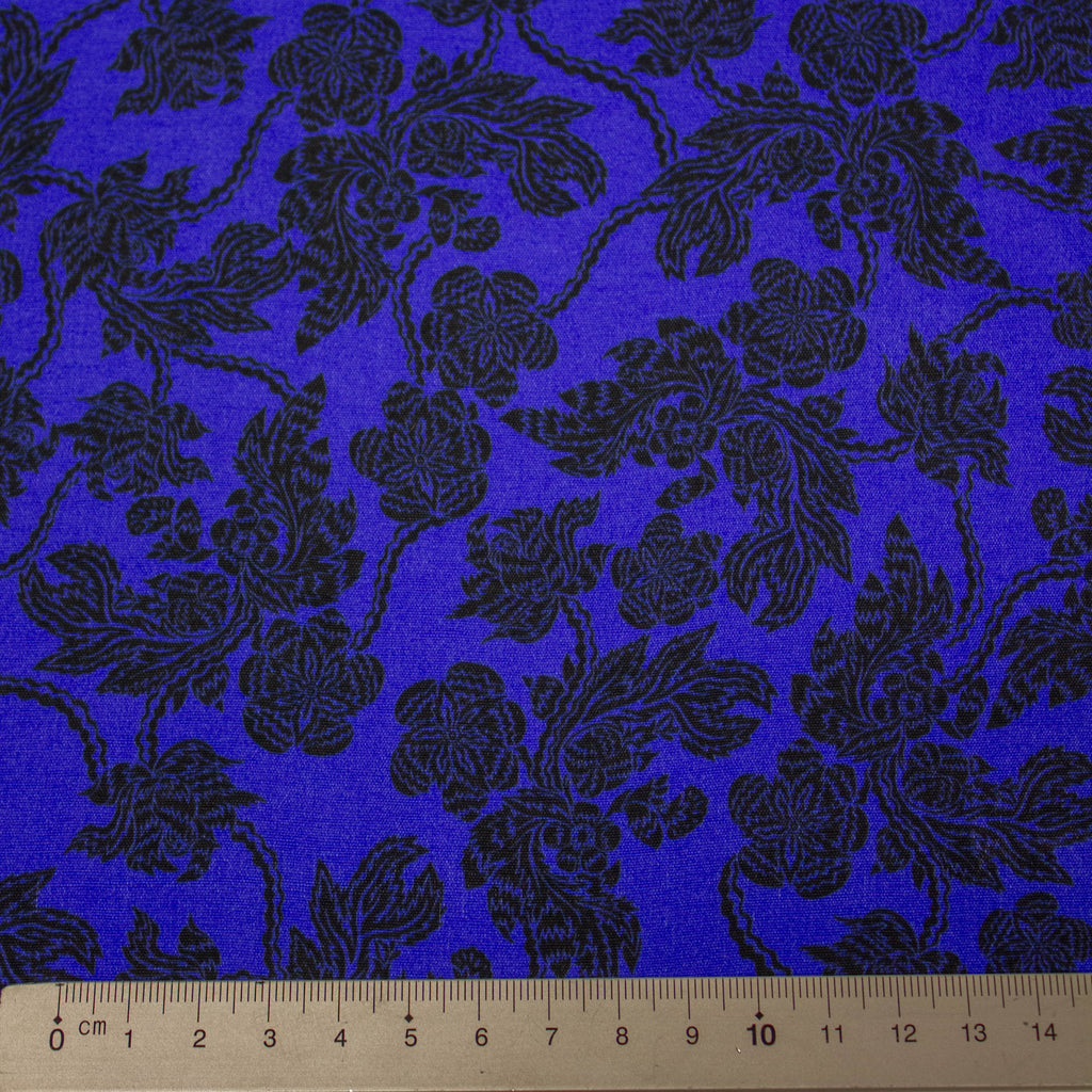 Sibre is a royal blue viscose fabric with black floral pattern. This fluid fabric can be used for tops, blouses, shirts, dresses and skirts.