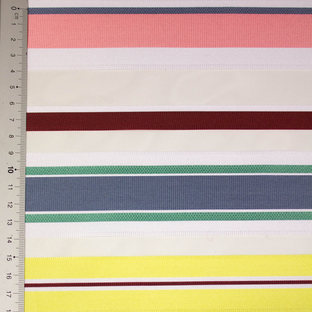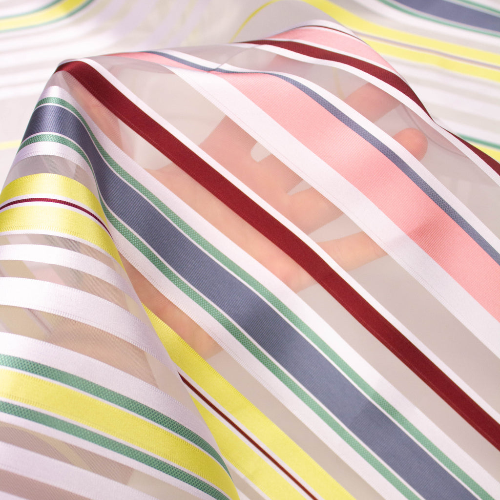 Tilla is a beautiful multicolour striped organza fabric that you can use or skirts, tops, dresses and trousers.