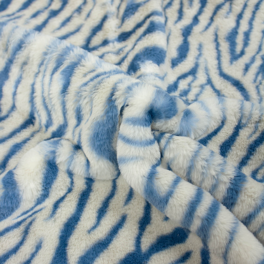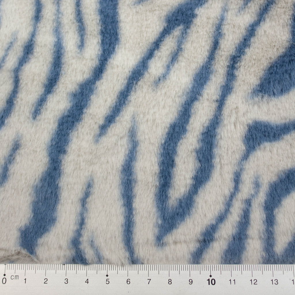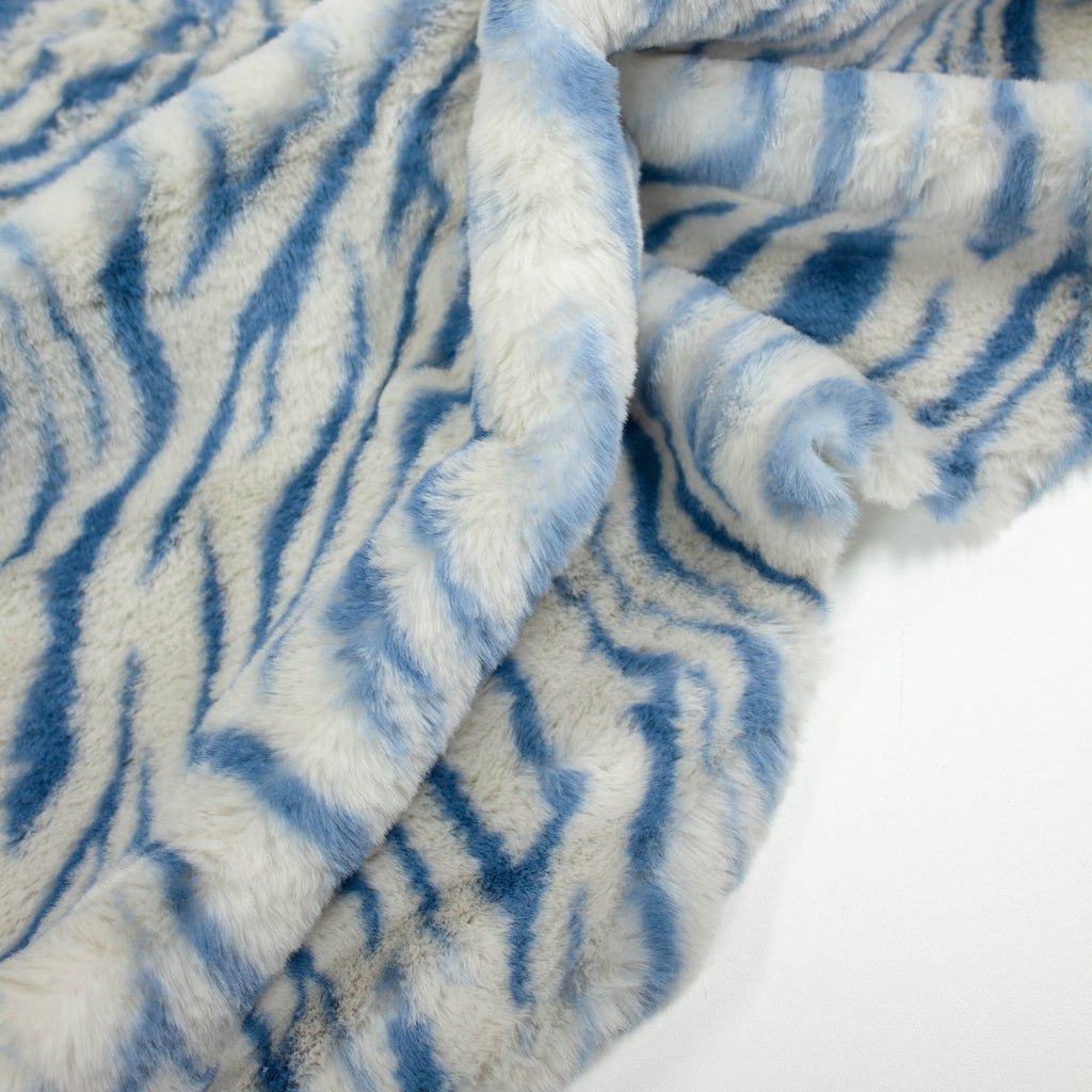 Yore is a very soft and cozy faux fur fabric with blue abstract pattern. This fabric can be used for jackets, coats or interior purposes.